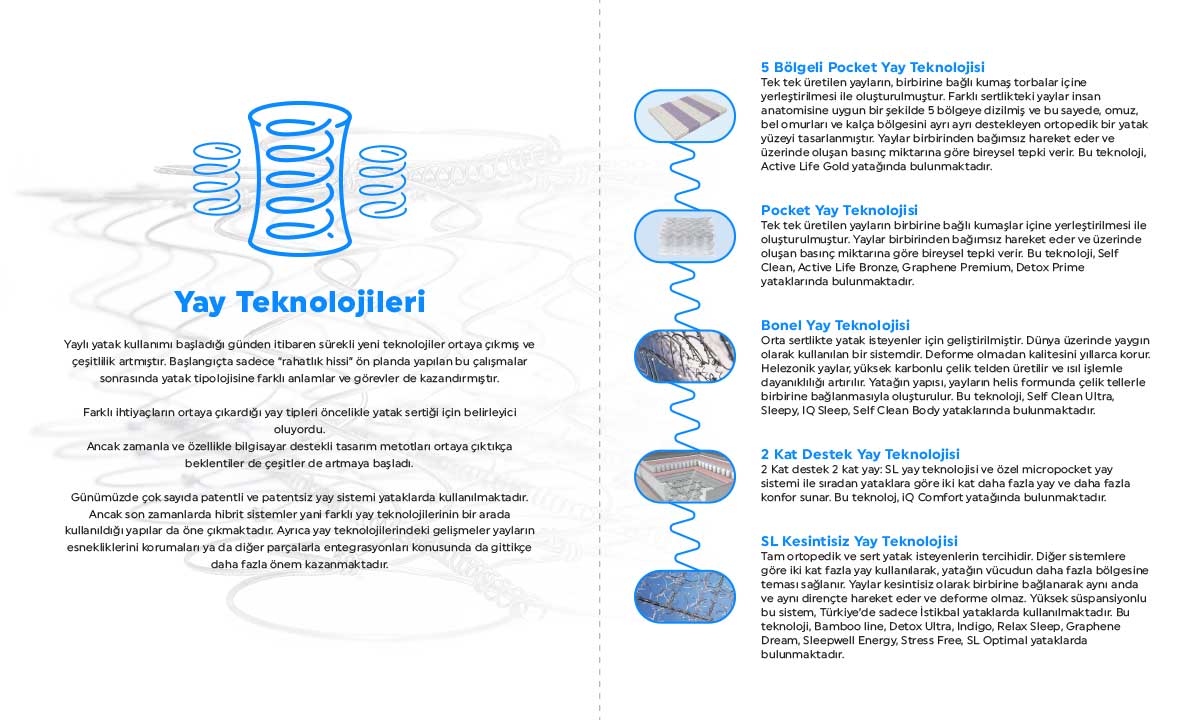 Since the beginning of the use of spring mattresses, new technologies have emerged and diversity has increased. These studies, which were initially carried out with only the “feeling of comfort” in the foreground, later gave different meanings and tasks to mattress varieties.